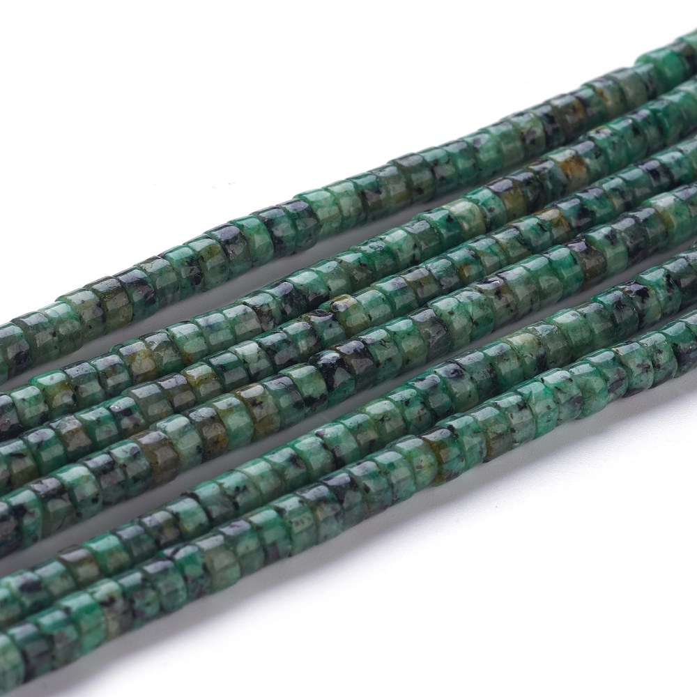 Afrikaans Turkoois heishi kralen van ca. 4~4,5x2,5 mm. Er zitten ca. 165 kralen op een streng en ze hebben een rijggat van ca. 0.7 mm.